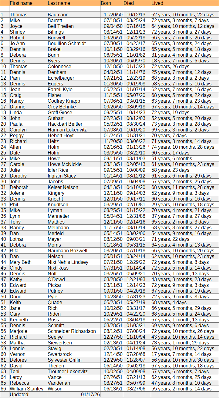 Interactive pin map. Classmate name/city/state/zip/country data used. However, no street addresses (phone numbers or email addresses) are used. 3/3/19: Yearbook graduation pictures have been added!
